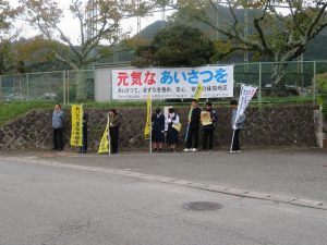 10月21日(火)丹波篠山市あいさつ運動が丹南中学校校門前でありました。