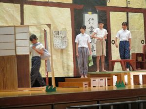特攻隊の話を通じて平和を訴えるものでした。一人一人が本気の演技。さすが3年生の思いをぶつけた真剣の舞台発表で素晴らしかった!